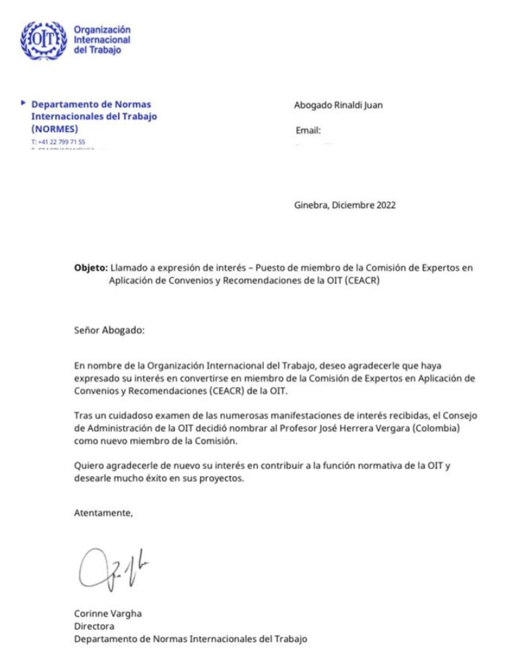 Juan Rinaldi, agradece a la Organización Internacional del Trabajo por un hermoso 2022 y a la Directora del Departamento de Normas Internacionales del Trabajo, Corinne Vargha, por este agrado y por la contestación.